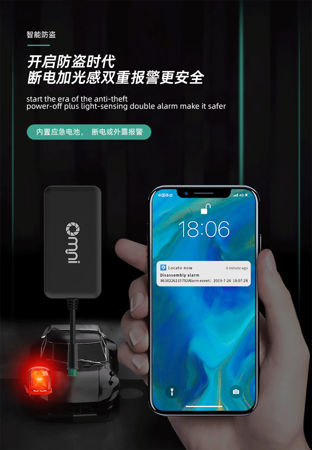 3.車載定位器具有報警功能,拿電瓶車來說,鎖車之后移動異常手機(jī)便會收到提示,如果車不幸被偷了,大概率還能通過車載定位器找回